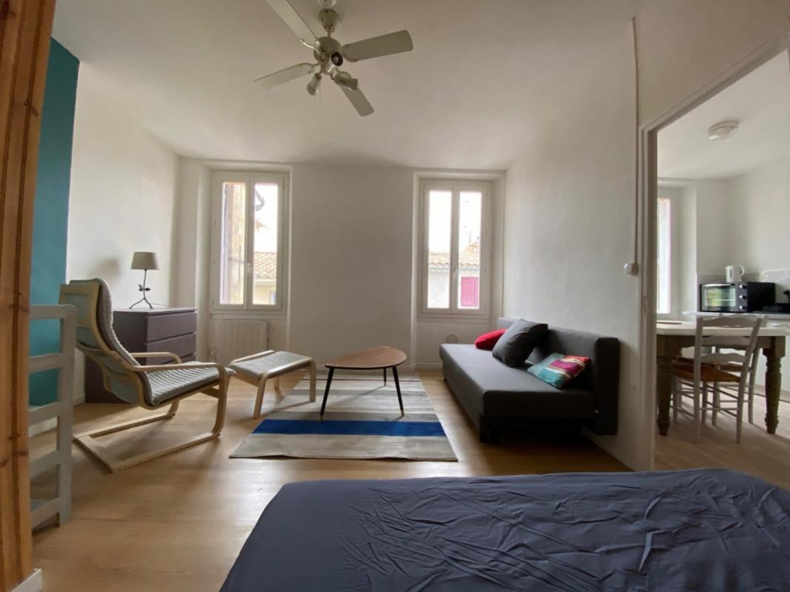 Un appartement meublé de type F1 au 2éme étage comprenant une cuisine, un séjour avec alcôve, une salle d'eau avec w-c.